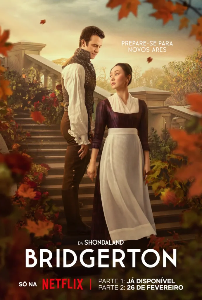 O pôster oficial da Parte 2 já entrega o tom: “Prepare-se para novos ares”. Isso sugere que a série deve mergulhar mais fundo na realidade de Sophie, fugindo um pouco do brilho óbvio da alta sociedade para mostrar um lado mais cru — e emocionante — da Londres da Regência.