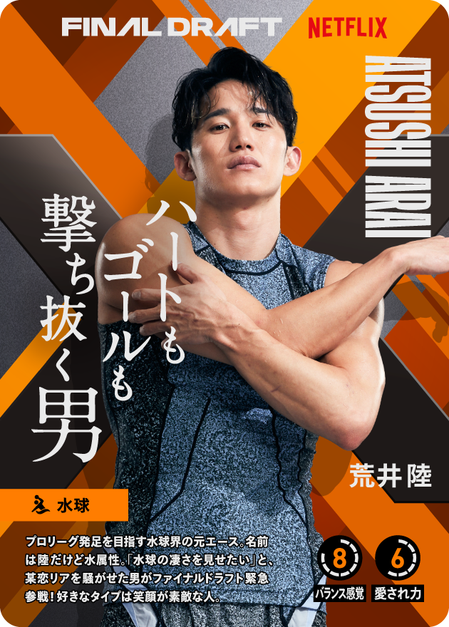 Conhecido por representar o Japão em duas Olimpíadas (Rio 2016 e Tóquio 2020) no polo aquático, Arai demonstrou grande perseverança e espírito de equipe, conquistando uma medalha de ouro nos Jogos Asiáticos de 2022 e pratas em 2014 e 2018.